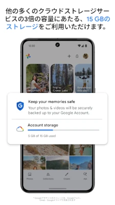 大切な思い出が、スマートフォンの中で埋もれていませんか? Google フォトは、あなたの写真や動画すべてを一箇所に集め、いつでも最高の状態で楽しめるスマートなギャラリーです。すべてのGoogleアカウントに無料で15 GBのクラウドストレージが付帯し、これはGoogle フォト、Gmail、Googleドライブで共有されます。撮影した瞬間から自動で安全にバックアップされるため、デバイスの空き容量を気にすることなく、どこからでも大切な瞬間を捉え続けられます。