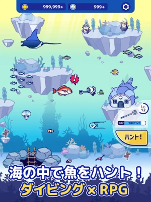 海底ハント ~ダイビング×RPG~は、未知の美しい海を舞台に、モリで生き物をハントして図鑑を完成させるアドベンチャーRPGです。海の住民の依頼をこなし、強大なヌシに挑みましょう。簡単操作で誰でも楽しめる、あなただけの海底探検が待っています。