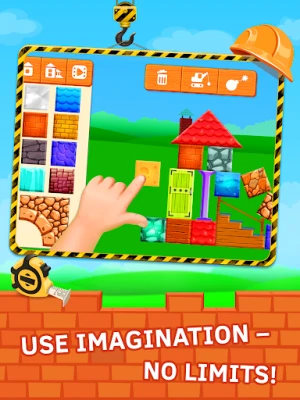 工事 こどもで小さな建築家になろう!デザインの楽しさを発見し、想像力を活かしてユニークな構造物を組み立てましょう。自分だけの美しい仮想世界を創造する、夢中になれる体験が待っています。お子様の創造性を育むアプリです。