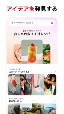 理想のライフスタイルを追求するなら、Pinterest が最適なパートナーです。最新のファッショントレンドから、食卓を彩る絶品レシピ、居心地の良い空間を演出するインテリアのアイデアまで、あらゆるジャンルのコンテンツがあなたを待っています。自分だけのパーソナルなコレクションを作成し、本当に欲しいもの、試したいこと、学びたいことをひとまとめに。あなたの「好き」が、ここには無限に広がっています。