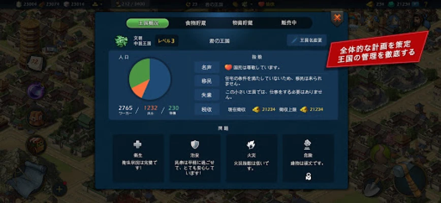 あなたの手で壮大な王国を築き上げ、歴史に名を刻む王となる夢を叶えませんか?この戦略シミュレーションでは、奥深いシステムと緻密な経営を通じて、唯一無二の理想郷を創造する機会が与えられます。未開の土地に城壁を築き、民衆を導き、その繁栄の礎を築き上げる、壮大な旅が今始まります。